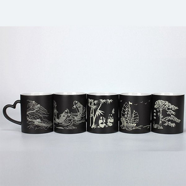 1. 獨特設計:熱變色馬克杯擁有特殊熱敏塗層,讓圖像在倒入熱飲後顯現,冷卻後恢復原色。