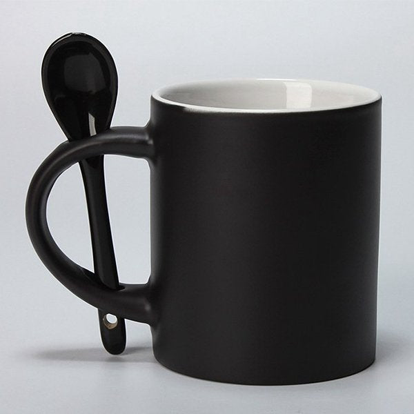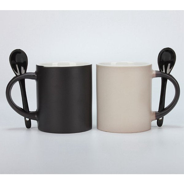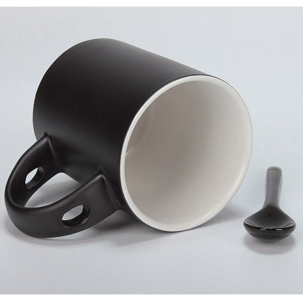 變色馬克杯-300ml黑色霧面附湯匙