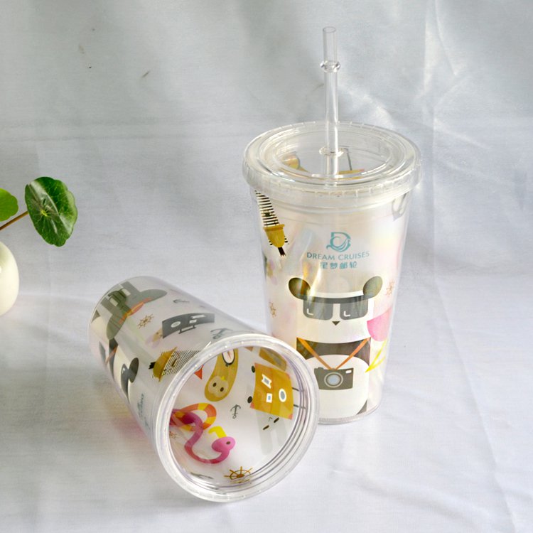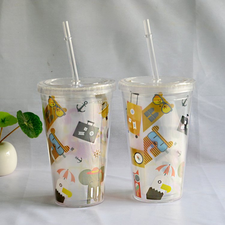 冷變色附吸管塑膠果汁杯-可客製化印刷LOGO
