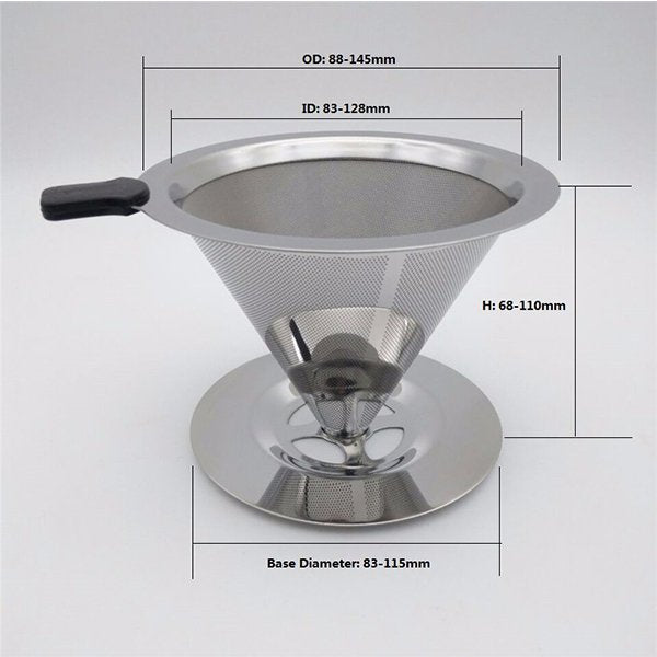 1. 不鏽鋼咖啡濾杯,採用優質不鏽鋼材質製成,耐用且不易生鏽,清洗方便,環保健康。適合辦公室、家庭使用。