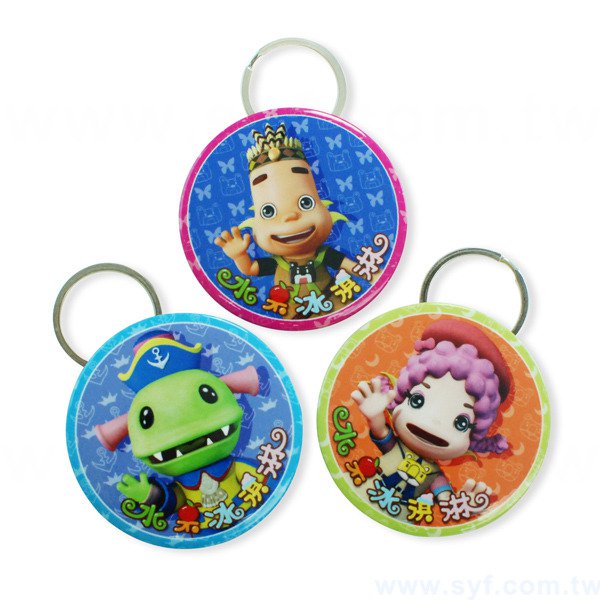 鑰匙圈,尺寸為58mm,規格為亮膜,包裝方式為透明OPP袋裝。