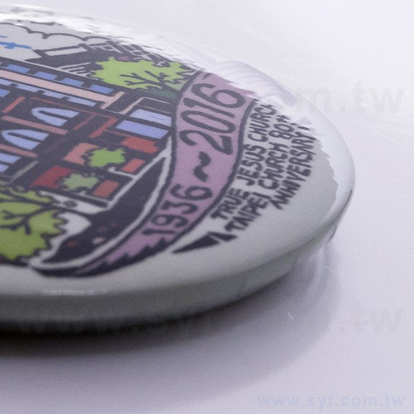 3. 尺寸為58mm,材質為磁鐵背,規格上亮膜,包裝透明OPP袋。