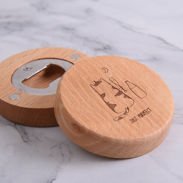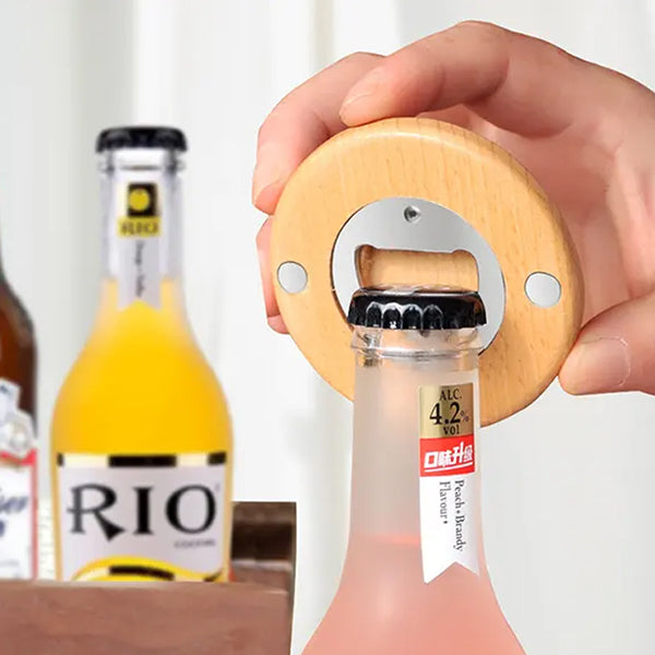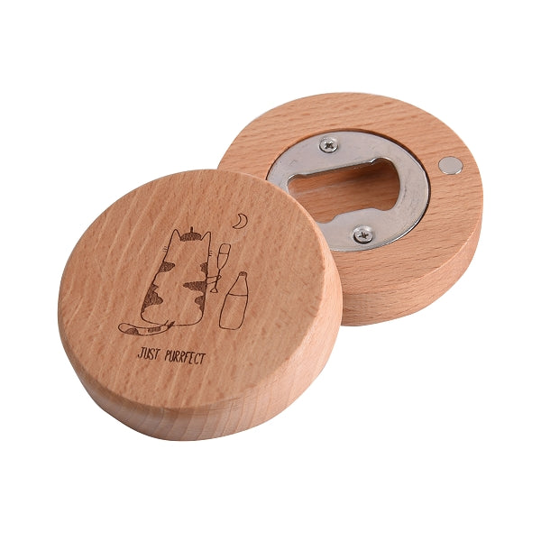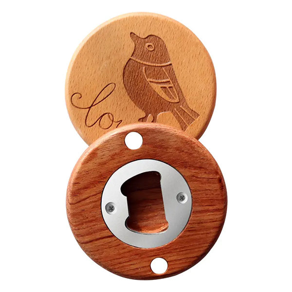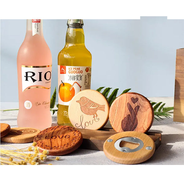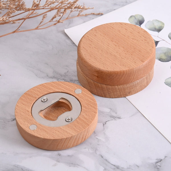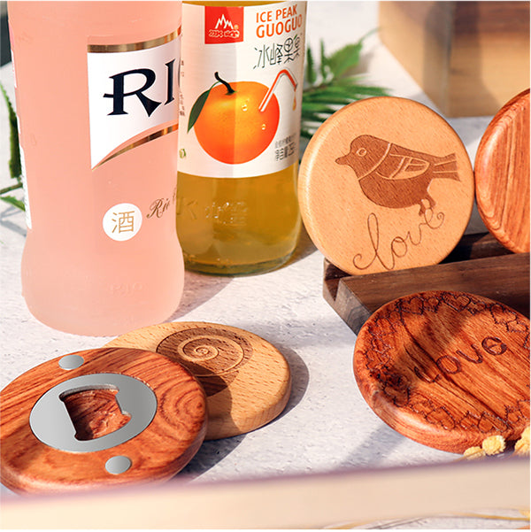 木雕冰箱貼圓形磁性木製啤酒開瓶器帶磁鐵