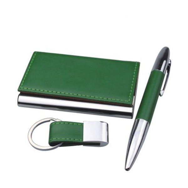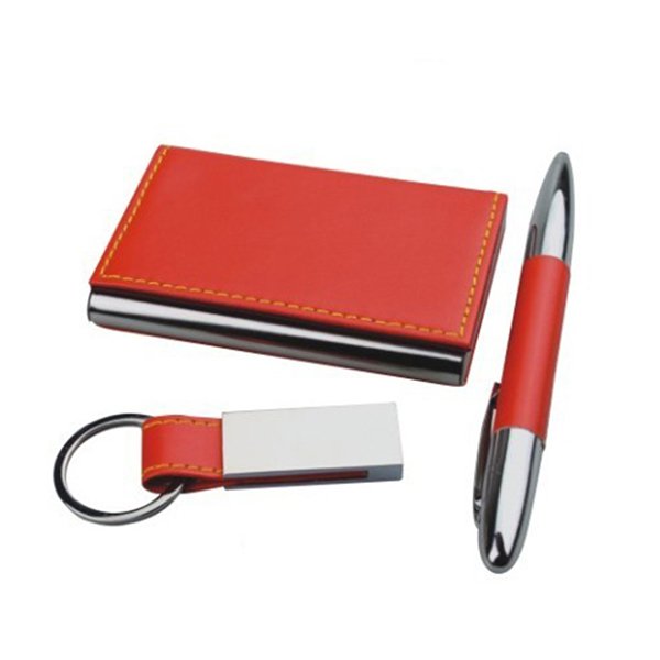 1. PU皮革商務禮品組包含名片盒、皮革鑰匙圈、皮革筆,材質為高品質PU皮革,展現專業與品味。