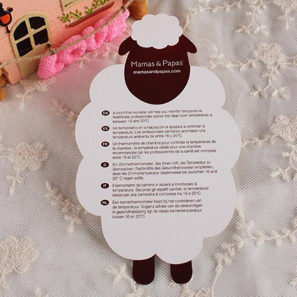 1. 造型溫度計卡尺寸為166x99mm,材質為銅版紙,適合辦公室使用。