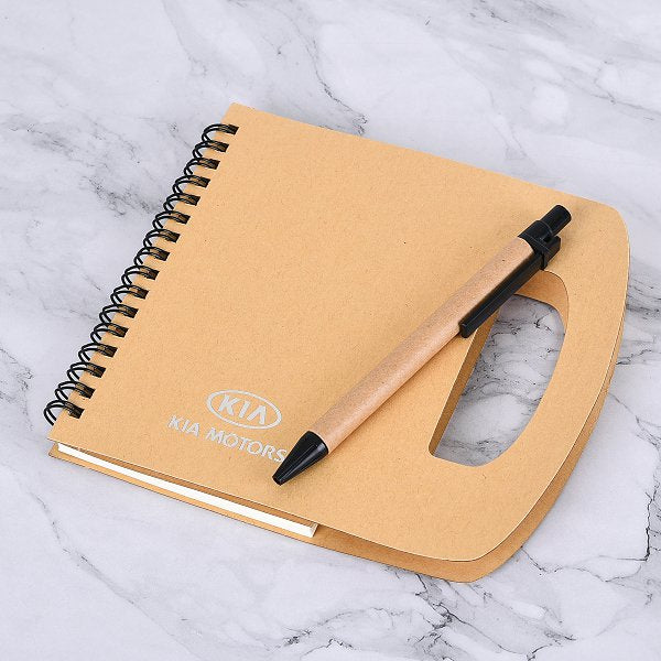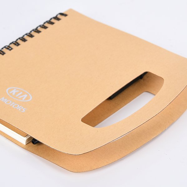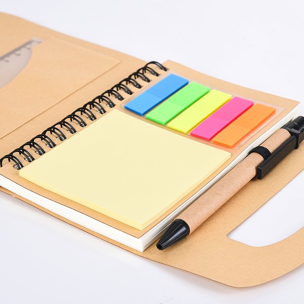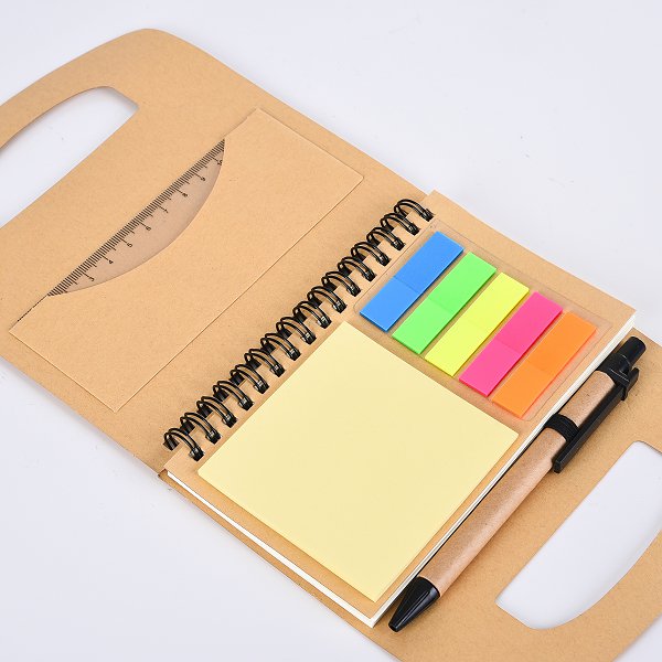 環裝筆記本-尺寸16x15.2cm三合一便條紙-封面牛皮燙銀-線圈記事本-附筆/尺