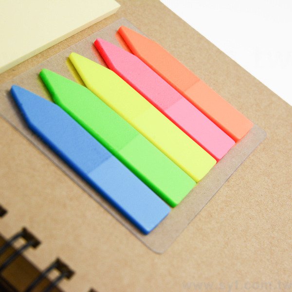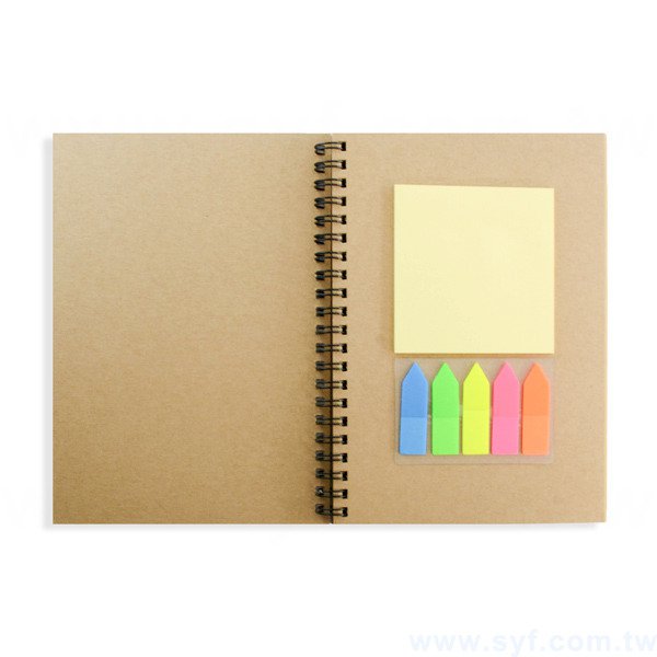 2. 牛皮紙封面配黑色雙線圈,堅固耐用,內頁附便利貼及五色標,實用性高。