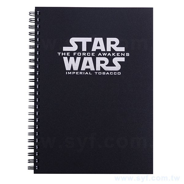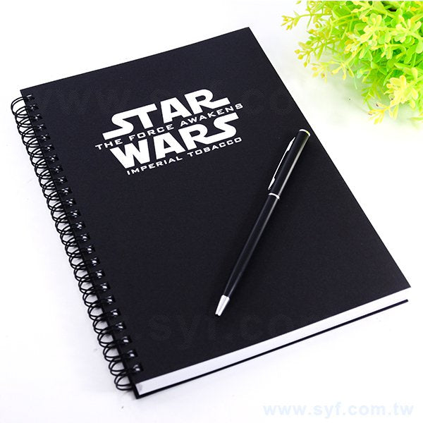 黑卡燙銀環裝筆記本-左翻空白線圈記事本-可訂製內頁及客製化加印LOGO