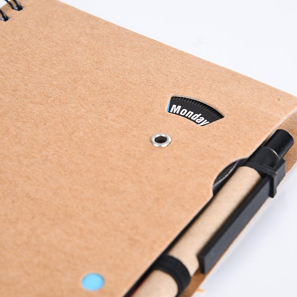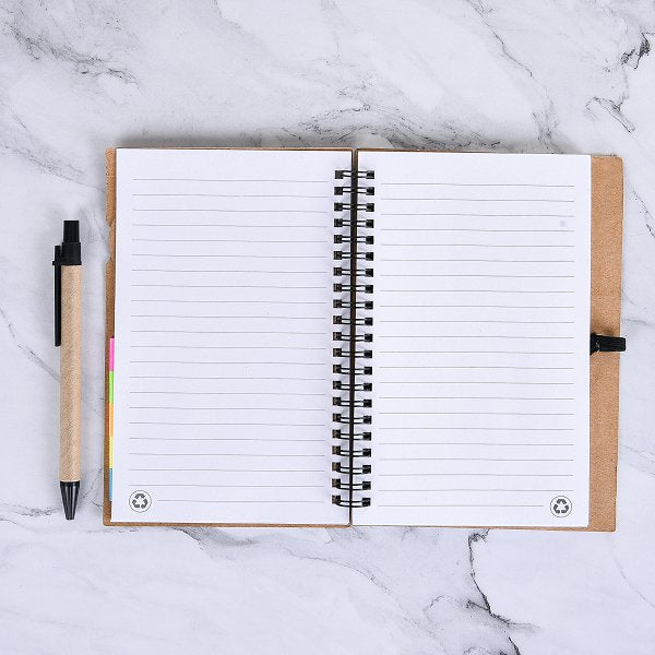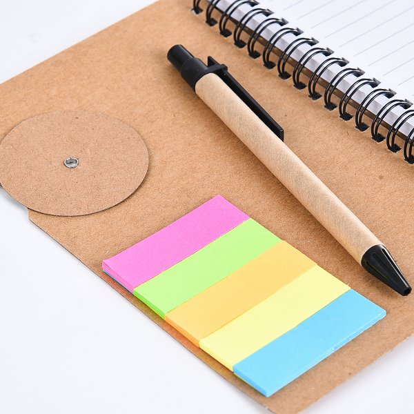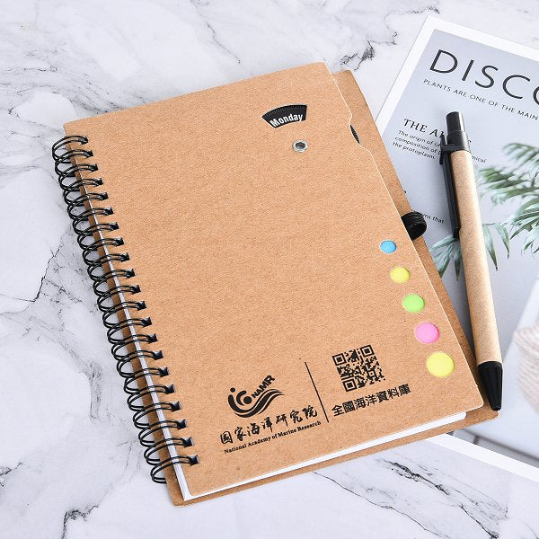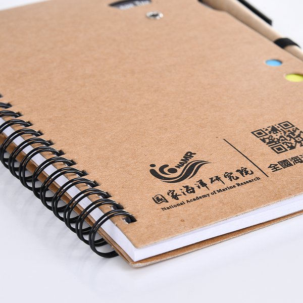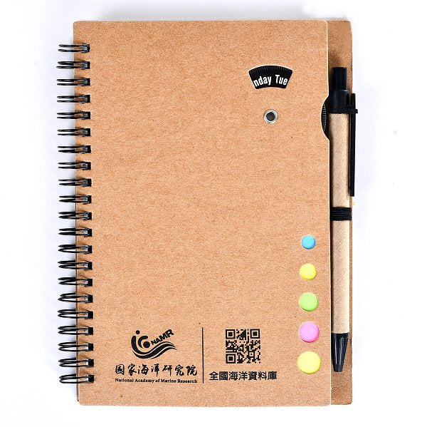 三合一便條紙-黑線圈環裝牛皮記事本-內頁單色印刷便條紙-附筆.便利貼