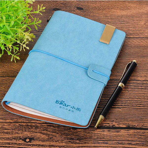 5. 綁繩式商務PU筆記本加筆夾,皮革材質,工商日誌、萬用手冊等關鍵字,展現專業商務風格。