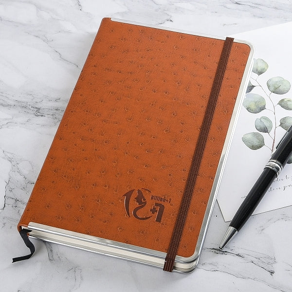 A5口金筆記本-PU皮革烙凹工商日誌-綁繩式筆記本