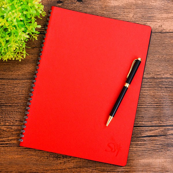 16K精緻高雅壓紋環裝工商日誌-十字紋線圈PU筆記本-可訂製內頁及客製化加印LOGO