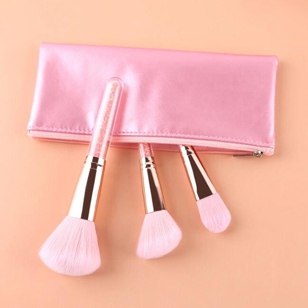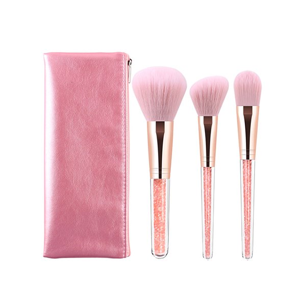 3件組彩妝刷具-皮革化妝包-塑料刷柄