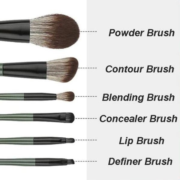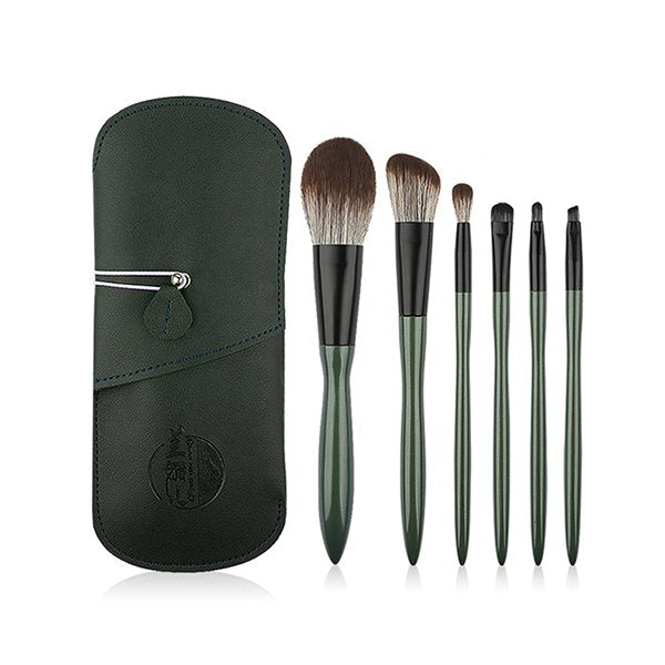 6件組彩妝刷具-皮革化妝包-塑料刷柄