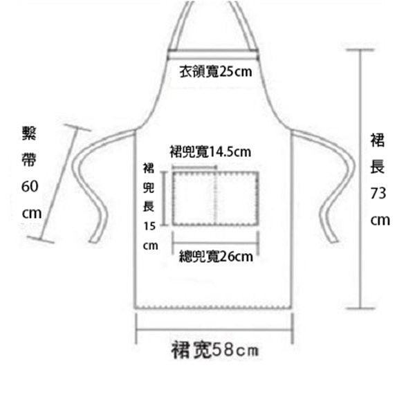 1. 掛脖款加厚廚房圍裙,裙寬58*裙長73cm,重量0.9kg,適合各種場合使用。