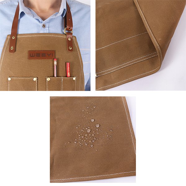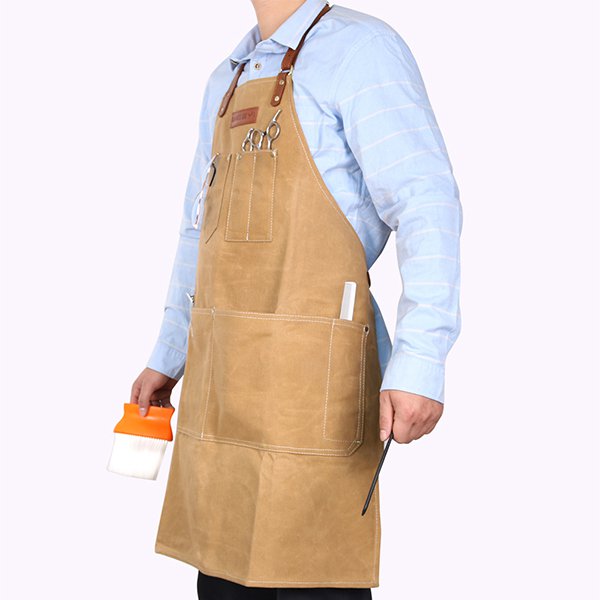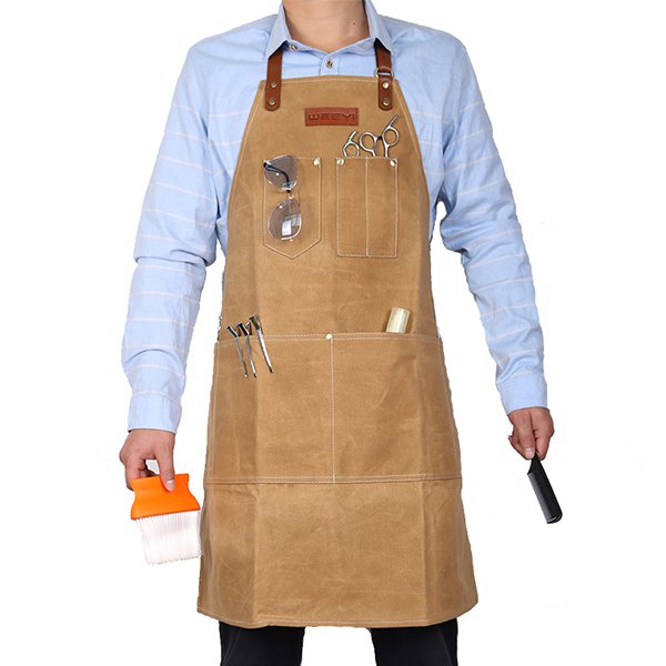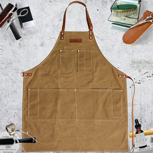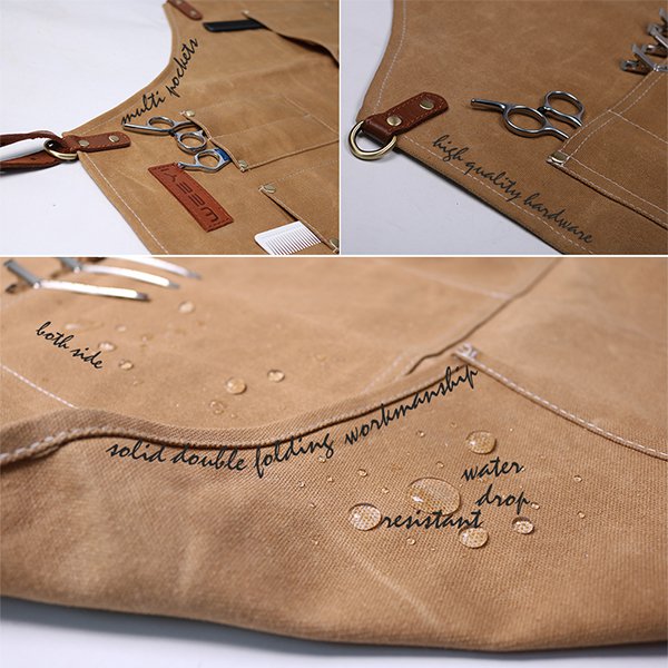 掛脖款過蠟帆布美容師圍裙-5口袋