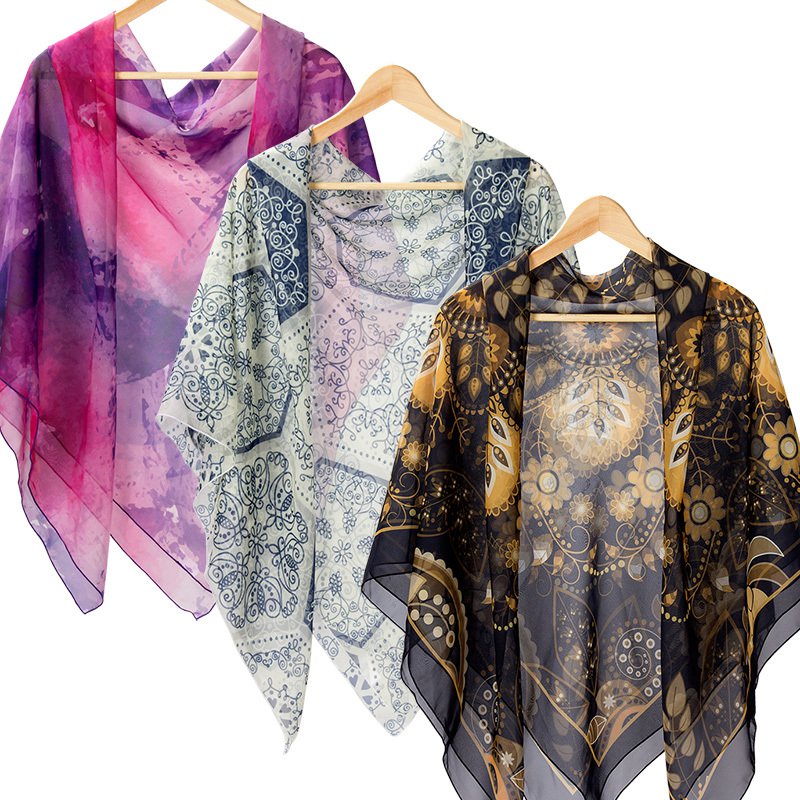 1. 專業印製的雪紡紗絲巾,清晰圖案,適用於飯店、酒店等場所。