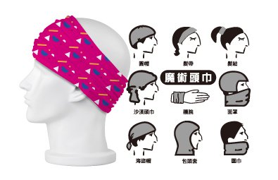 3. 可當頭巾、護腕、圍巾、髮帶等多種綁法,適用於郊遊、單車運動、登山、球類運動等。