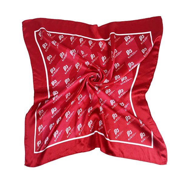 2. 商務會議中使用滌綸段面絲巾搭配公司logo印刷,展現專業形象,提升企業形象和辨識度。