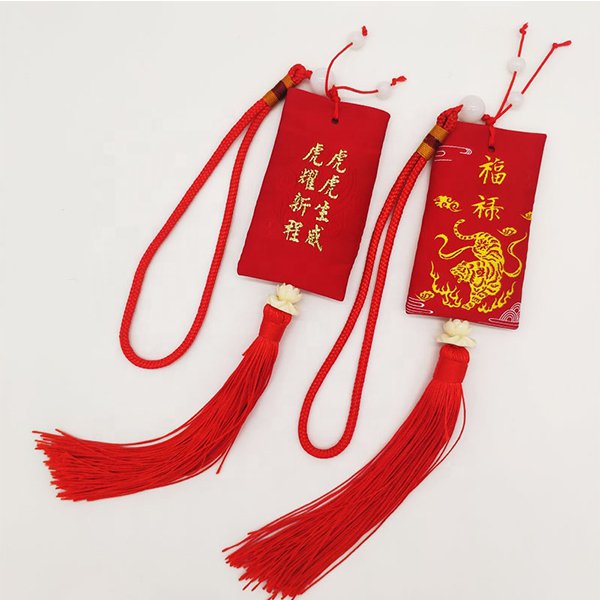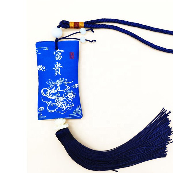 1. 長流蘇可放香料福袋御守,紡織材質製成,尺寸為7.2*4*0.5CM,質感柔軟舒適,適合送禮使用。
