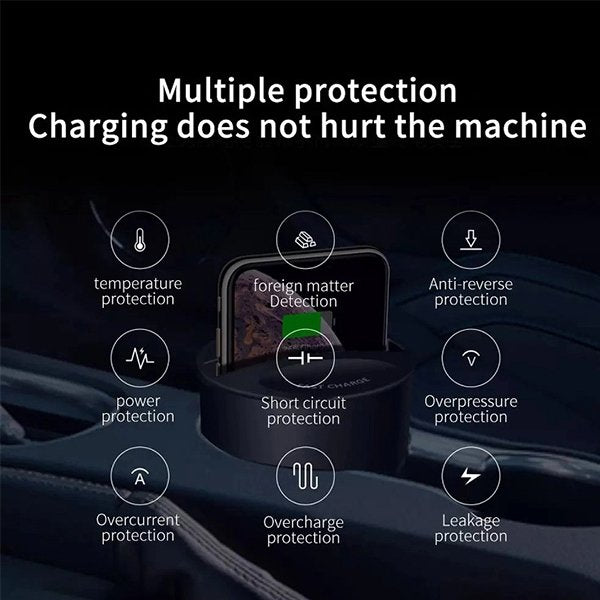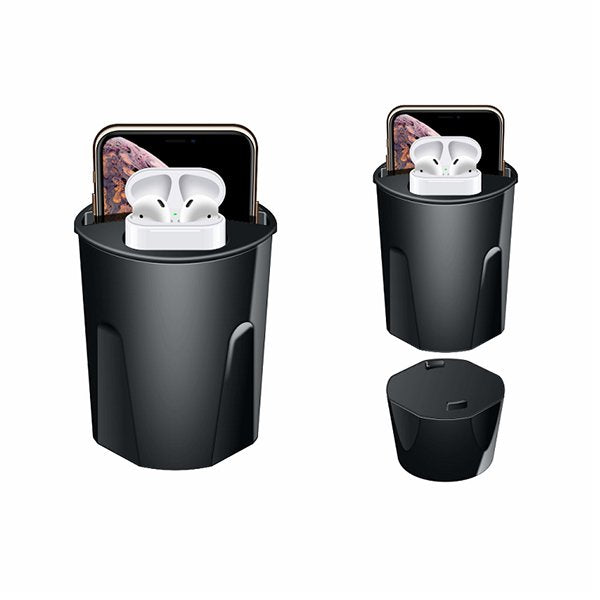 3.新穎的設計和優雅的外觀-優美的外形,看起來像漂亮的杯子,固定在預留水杯托上。只需將手機放入杯子即可開始充電。4.帶有USB輸出端口,可以同時為另一部手機充電