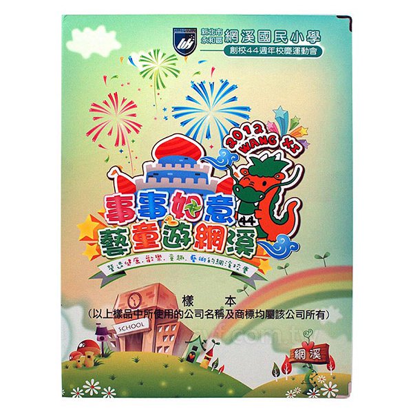1. 新北市網溪國民小學定製紙質檔案夾,防水處理,客製圖樣,金屬邊角設計,提升工作樂趣。
