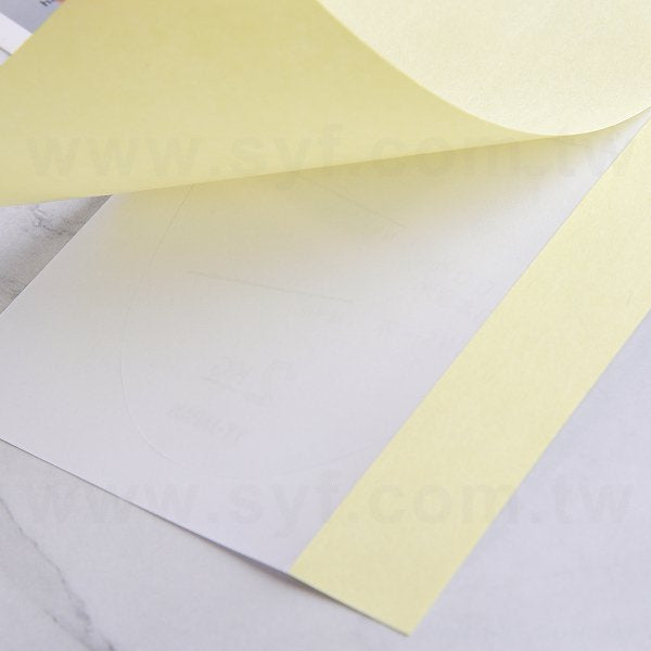 1. 名片型模造貼紙尺寸為140x90mm,厚度為70-80g,材質為標籤貼紙,適合250張起印。製作時間為4天。
