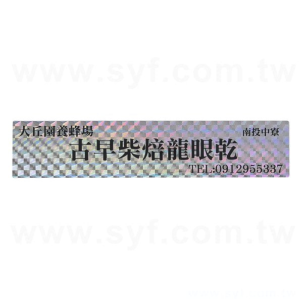 1. 方形雷射貼紙材質堅固,尺寸為145x30mm,適合公司產品包裝使用,增加品牌辨識度。