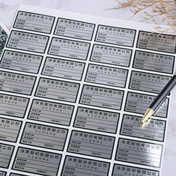 1. 方形亮面金屬貼紙,尺寸50x30mm,展現專業形象,適合公司禮贈品使用。