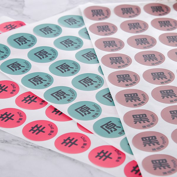 1. PVC防水合成貼紙,圓形30mm尺寸,厚度70-80g,適用於公司產品包裝,展現專業形象。