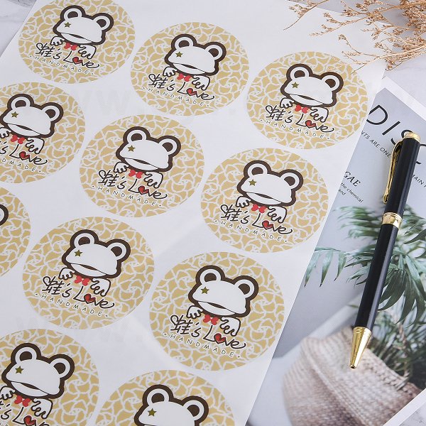1. 圓形透明貼紙,透明亮膜材質,色彩鮮豔,適合公司產品包裝,增添視覺吸引力。