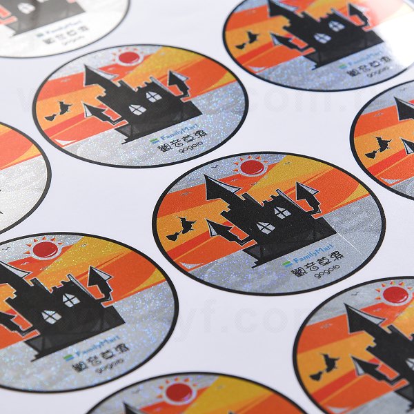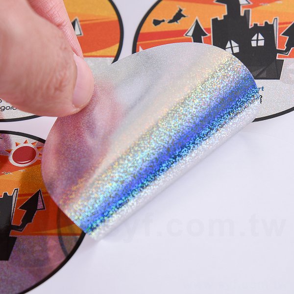 圓形雷射貼紙(砂點雷射)+白墨+亮膜65mm(同33CA-0053)