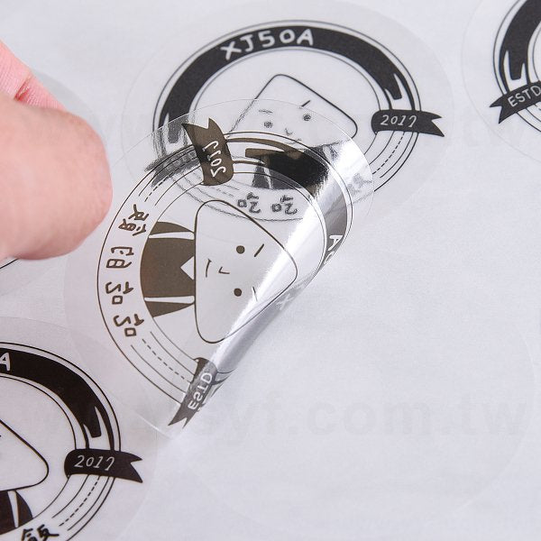 1. 圓形透明貼紙,透明亮膜材質,色彩鮮豔,適合公司LOGO或活動宣傳使用。