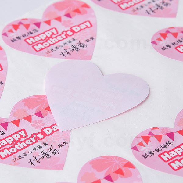 1. 小巧可愛的心形超黏銅版貼紙,適合作為公司禮贈品或活動贈品使用。