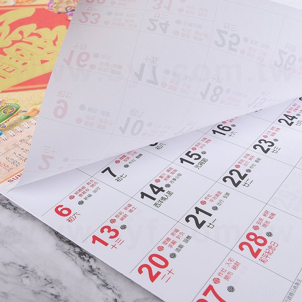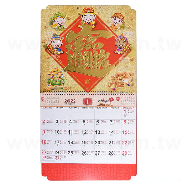 1. 百福月曆-彩色燙金公版款,適合辦公室、商店等場所使用,精美設計。