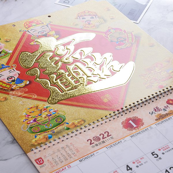 百福月曆-彩色燙金公版款-下方燙金廣告印刷