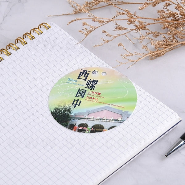 1. 專為學校專區設計的70mm圓型吊牌,材質採用一級卡雙霧膜,質感優良,適合作為企業禮贈品。