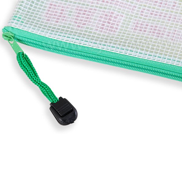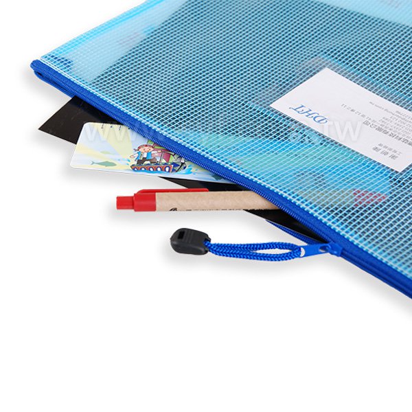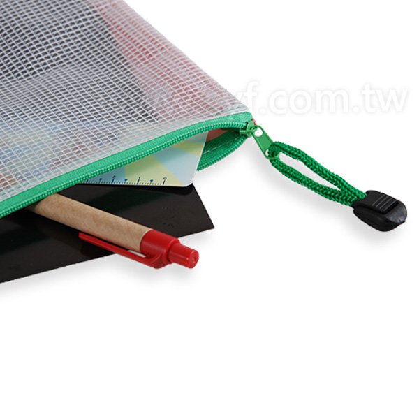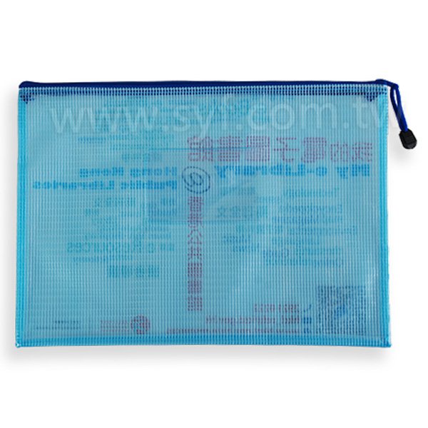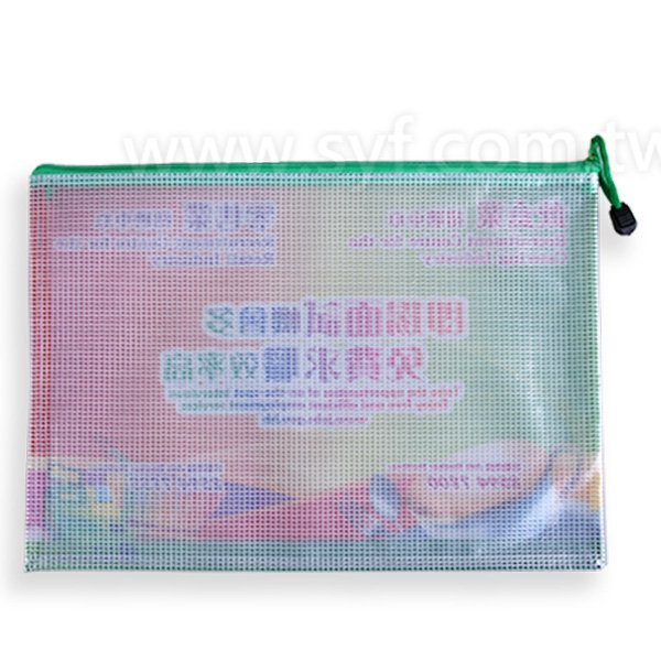 1. PVC網格拉鍊袋,尺寸34x24cm,堅固耐用,適合收納文件或文具,印刷logo宣傳效果佳。