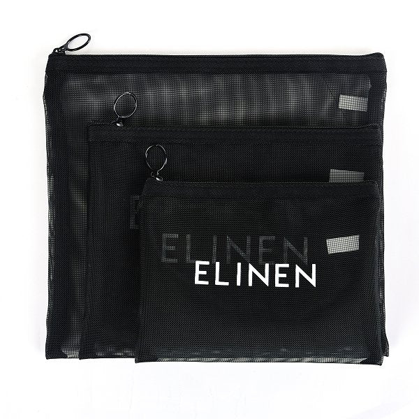 1. 這套三個不同尺寸的PVC網格拉鍊袋,適合各種場合使用,大的可以裝文件資料,中的可以當作化妝包,小的可以放手機配件。