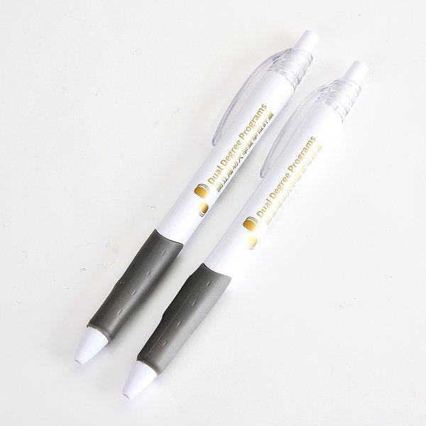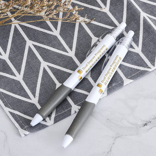 1. 專業設計:廣告筆-矽膠防滑筆管禮品,白桿款式,金色印刷設計突出品牌logo,展現專業形象。