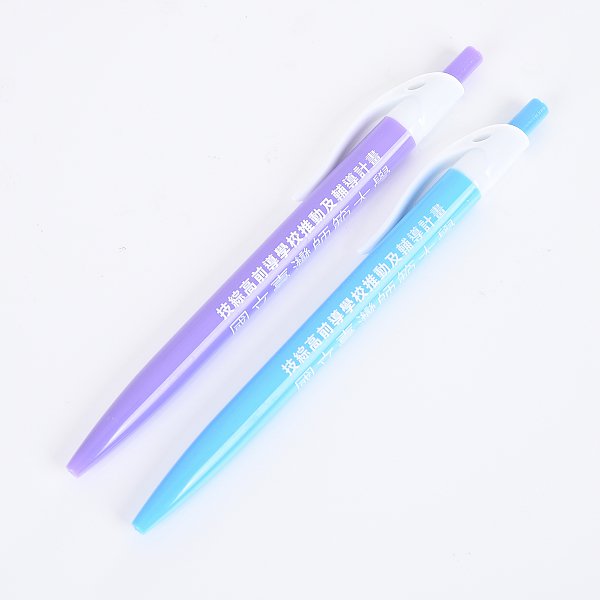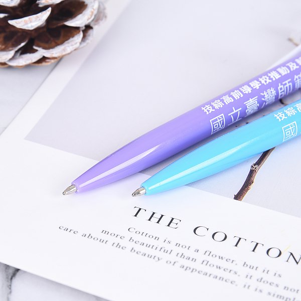 1. 廣告筆-粉彩單色原子筆,筆桿可選藍或紫色,印刷白色字體,簡潔大方。