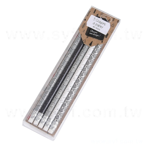 原木鉛筆-圓形橡皮擦頭-PVC盒裝5入裝-可客製