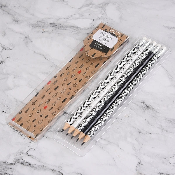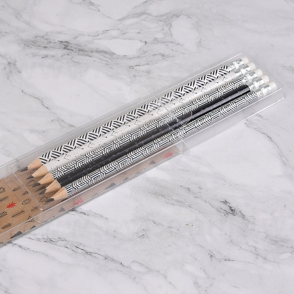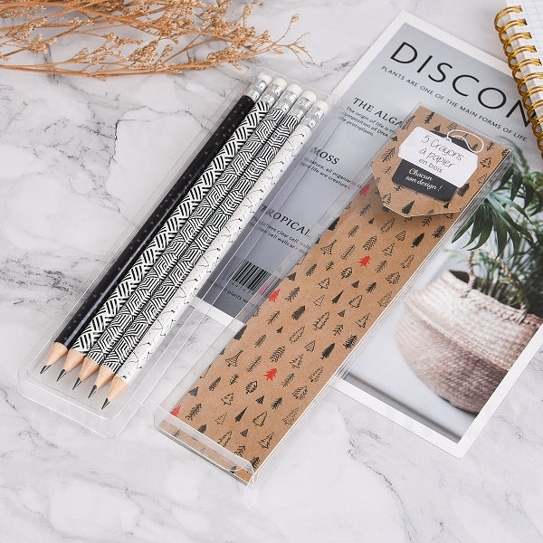 1. 原木鉛筆-圓形橡皮擦頭-PVC盒裝5入裝,尺寸為5*20.5*1.2cm,方便攜帶使用。