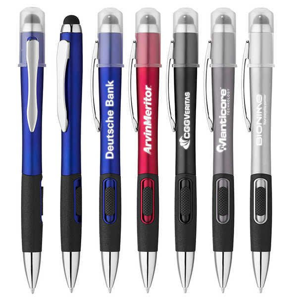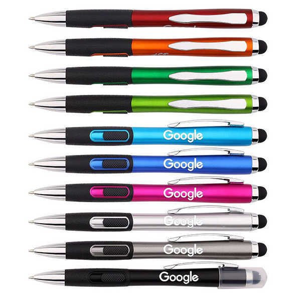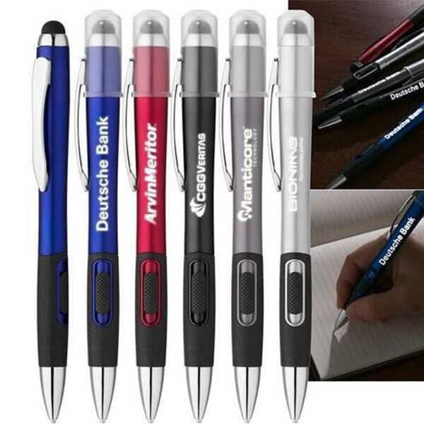 1. 側開式LED發光LOGO觸控圓珠筆,結合LED發光LOGO和觸控功能,展現專業形象,適用於商務會議使用。