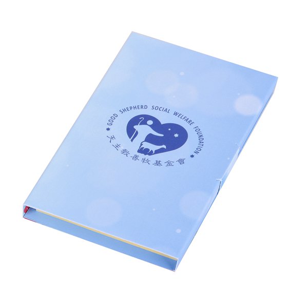 二合一書本式封卡便利貼-封面彩色印刷上霧膜-7.6x5cm內頁無印刷便利貼