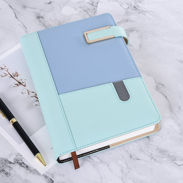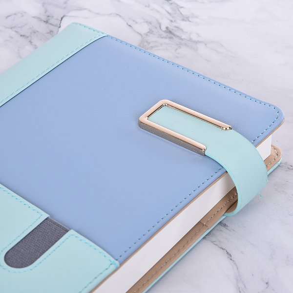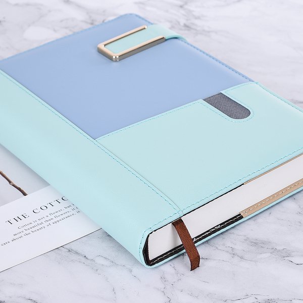 1. 25K雙色拼接工商日誌,尺寸適中,方便攜帶,適用於商務場合使用。封面採用PU皮革,展現高雅專業形象。