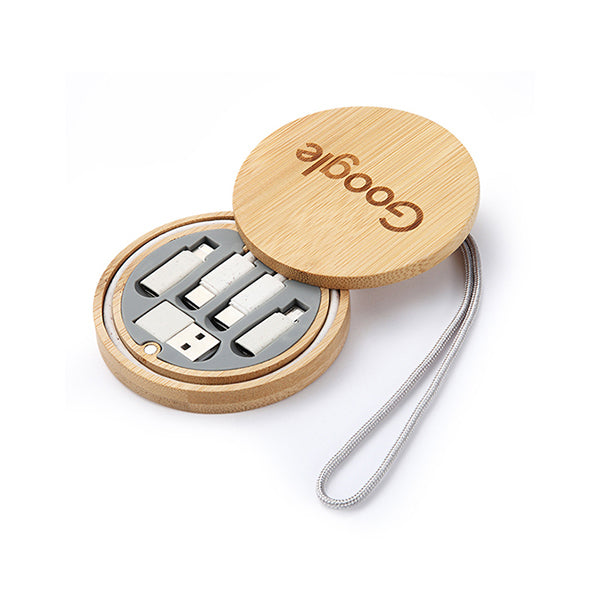 四合一收納盒-圓形多功能竹木傳輸線-環保可降解