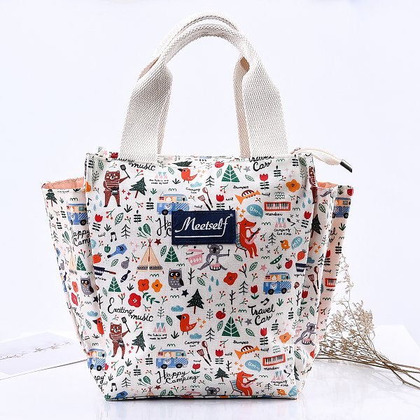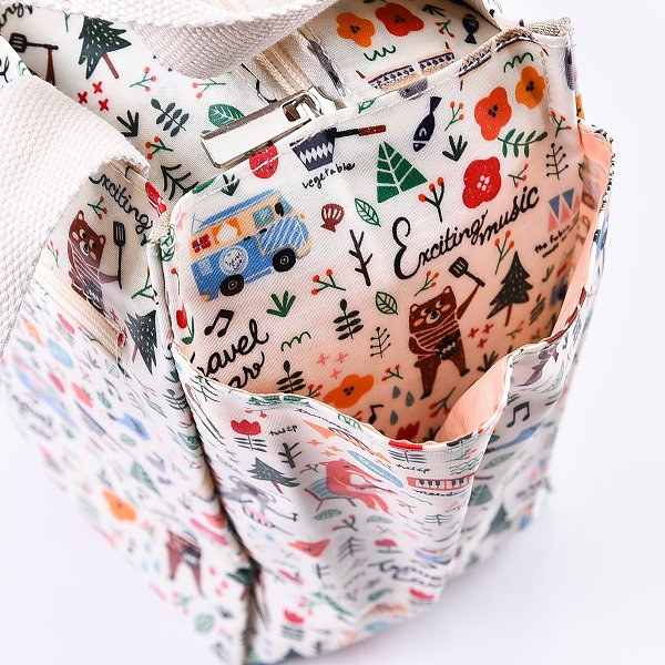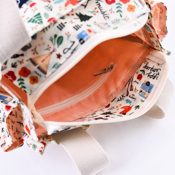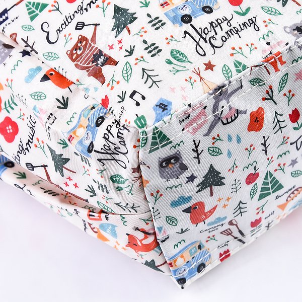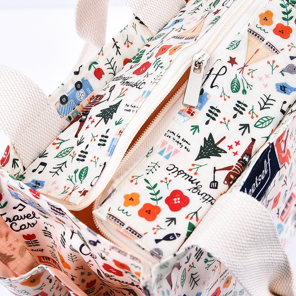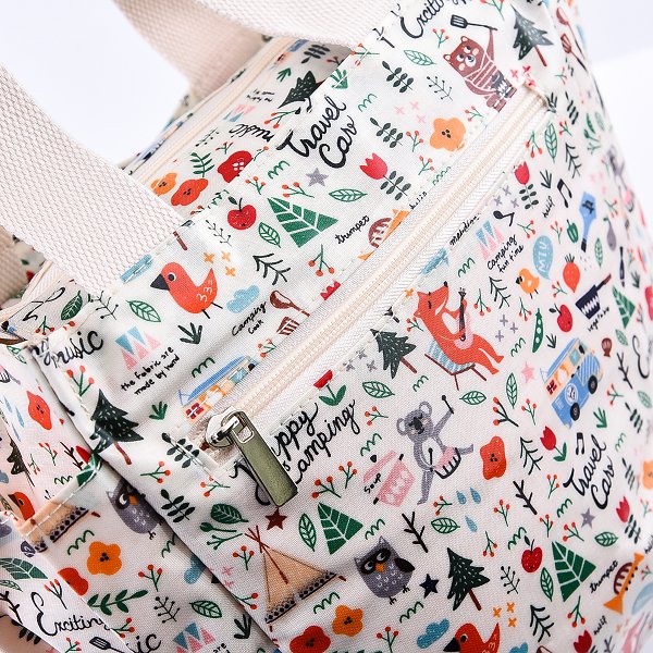 牛津布-有底有側-滿版彩印-拉鍊-側口袋+內口袋