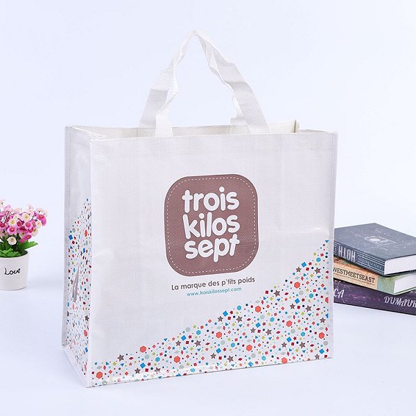 1. 光滑PP編織袋是客製化購物袋,材質為PP,尺寸可定製,適用於商務會議展示企業形象。