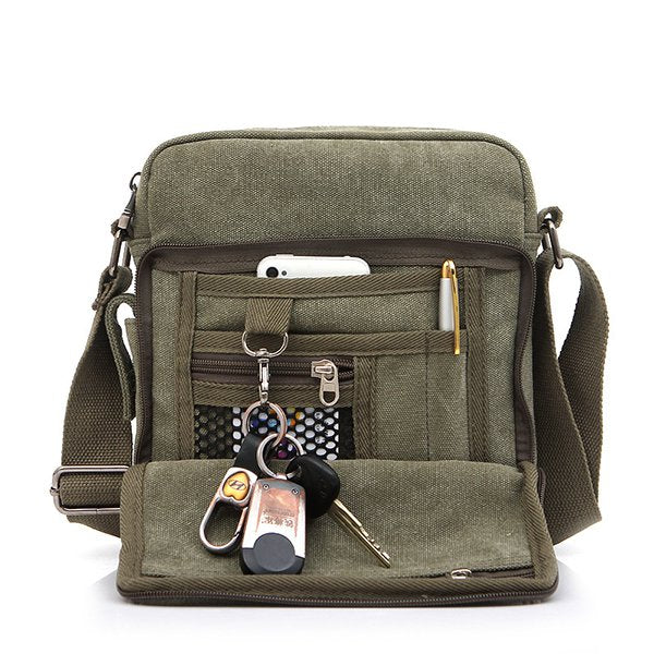 1. 多夾層斜跨包採用帆布材質,耐用且時尚,適合商務會議和戶外活動使用。